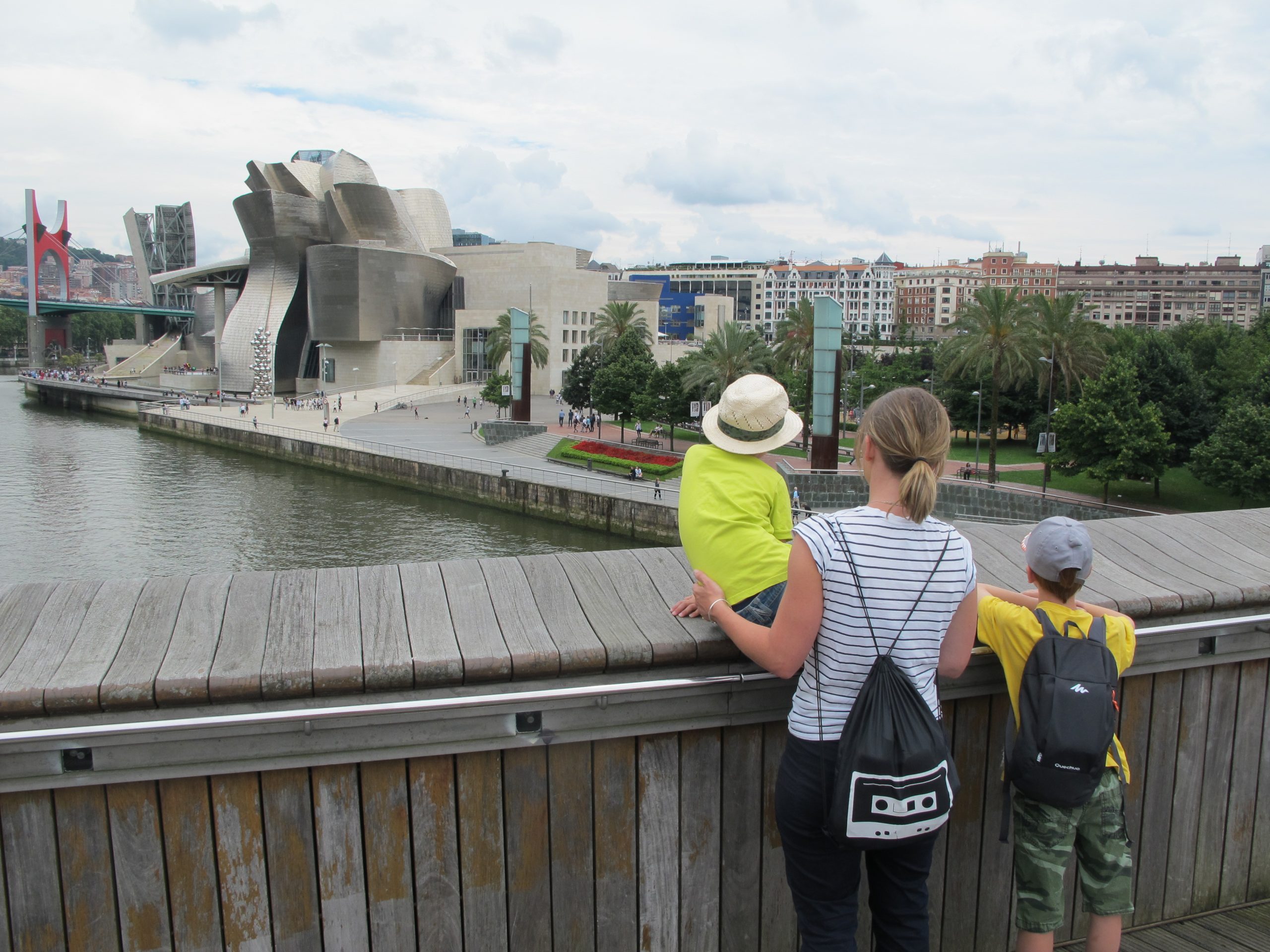Das Guggenheim Museum ist schon echt beeindruckend, alleine von außen macht es echt was her, wenn die goldenen Kacheln sich in der Sonne spiegeln und so, und die Architektur ist schon sehr interessant. Die Jungs fanden es sieht aus wie Nesselbrand aus „Die Drachenreiter“ wegen der goldenen Schuppen :o)