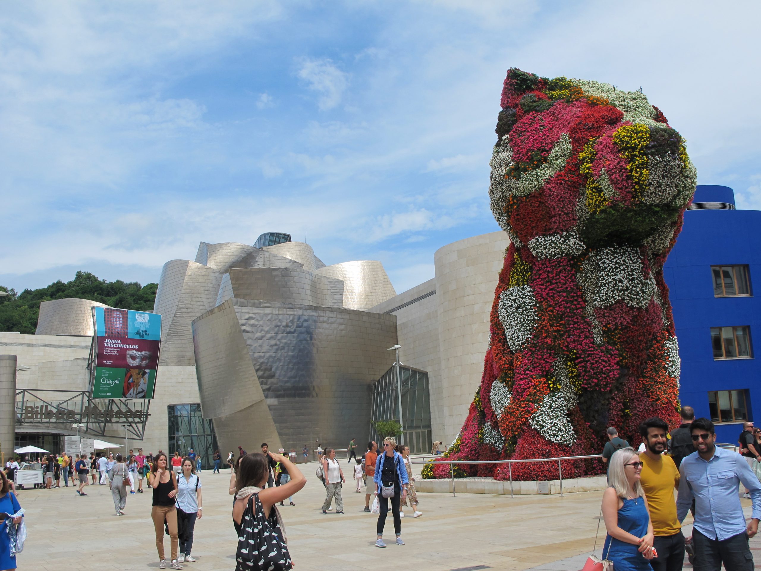Von der Station Larrabasterra (ca. 2min Entfernung) ca. 20 min mit dem Zug gefahren, bis wir an der Station Deusto wieder ausgestiegen sind, da hier unserer erster Halt mit dem Guggenheim-Museum auf dem Plan stand. Erstmal ein Toiletten-Kaufhaus aufgesucht und dann gings los.Bilbao selber fanden wir ganz nett mit vielen Kinderspielplätzen und schön am Fluss entlang spazieren gehen.