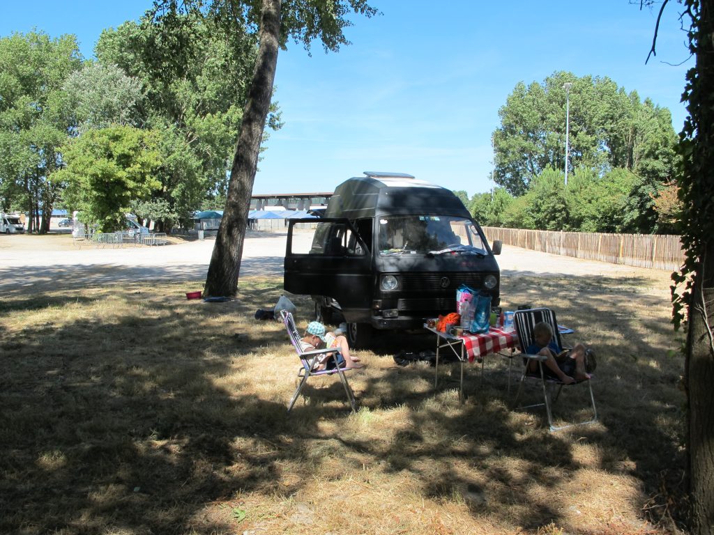 Alle waren glücklich, sind dann zurück zum Bulli, Dort alles eingepackt und Zähne geputzt, so dass gen 23.00 Abfahrt war. Wir kamen ca. bis Chatres und haben dort einen kleinen, süßen Stellplatz gefunden sehr nah an unserer Strecke. Dort sind wir gen 04.30 angekommen, haben die Jungs umgebettet und sind selber ins Bett gefallen.