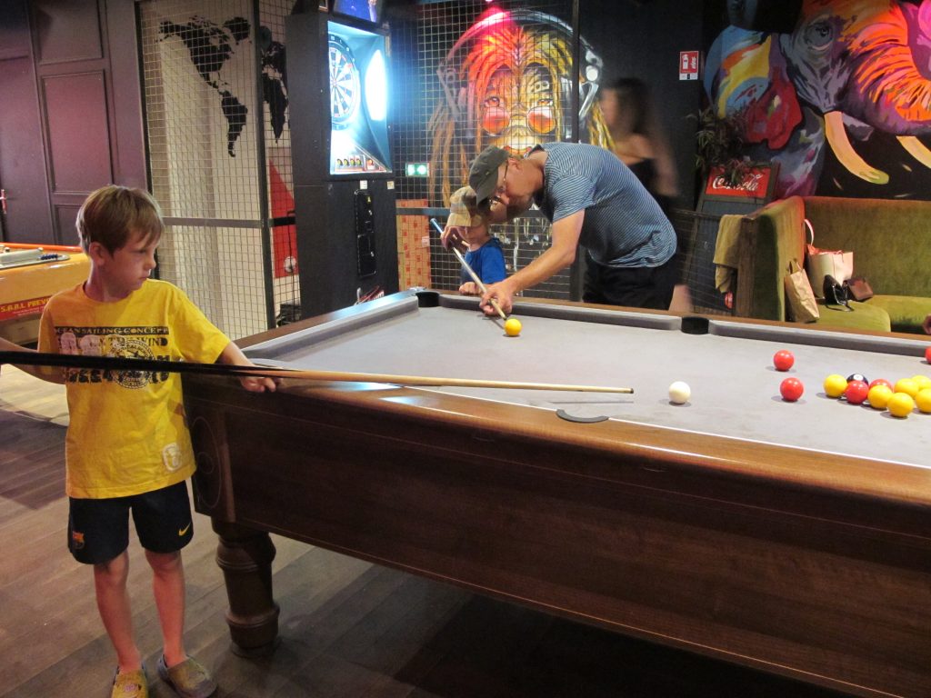 Um 17.30 sind wir dann wieder mit dem Bus in die Stadt und haben in einer Kneipe mit den Jungs Billard gespielt. Hat Ihnen sehr viel Spaß gemacht. Pommes geholt und wieder zum Skaterpark, wo Jan unbedingt wieder hinwollte.