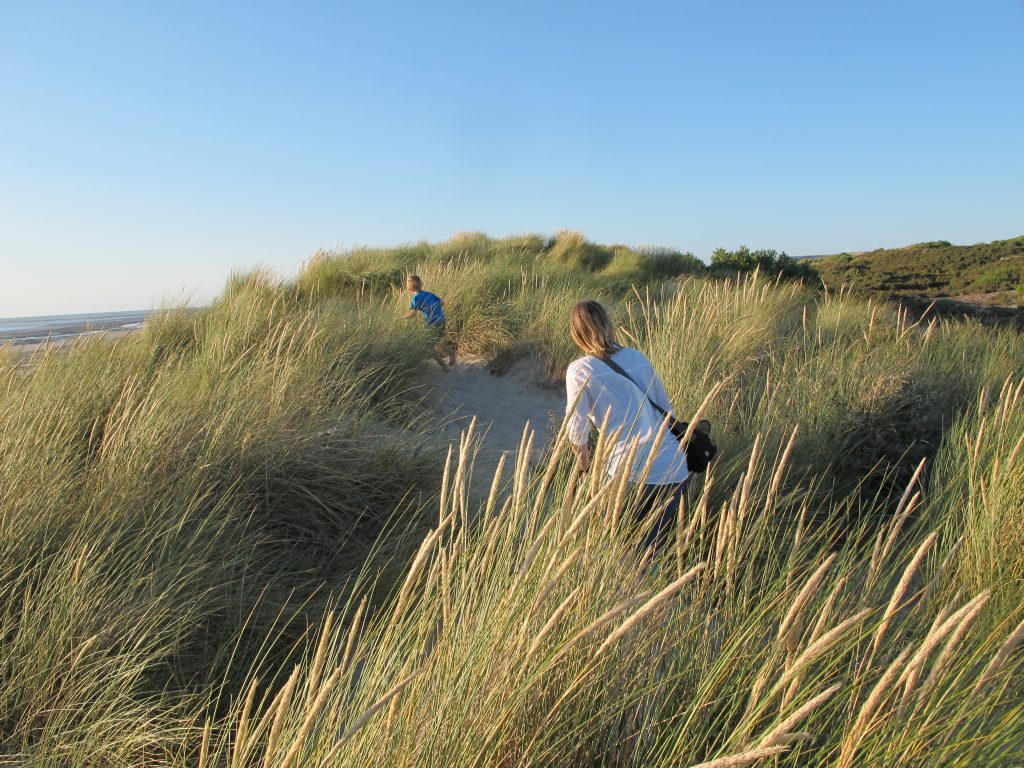 Dann wieder Rückweg über die Dünen beim phantastischen Sonnenuntergang mit Versteckspielen. Jan hatte die supercoolen Verstecke und hat keinen Mucks gesagt, suuupergut.