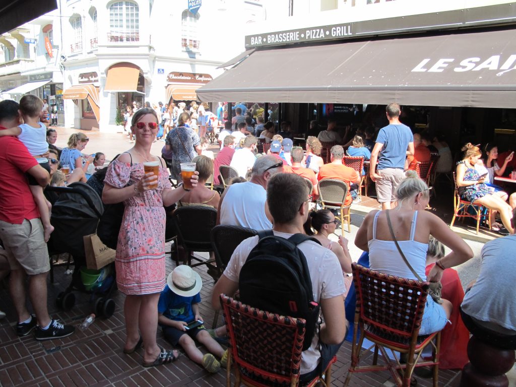Wir holten uns eine XXL-Familienpizza und haben sie an der Strandpromenade gegessen, dabei dem Autocorso und den feiernden Franzosen zugeschaut. Dabei festgestellt, dass die Kinder größer werden, da die Pizza fast nicht mehr für uns alle gereicht hatte…